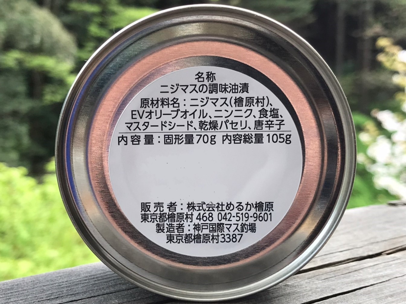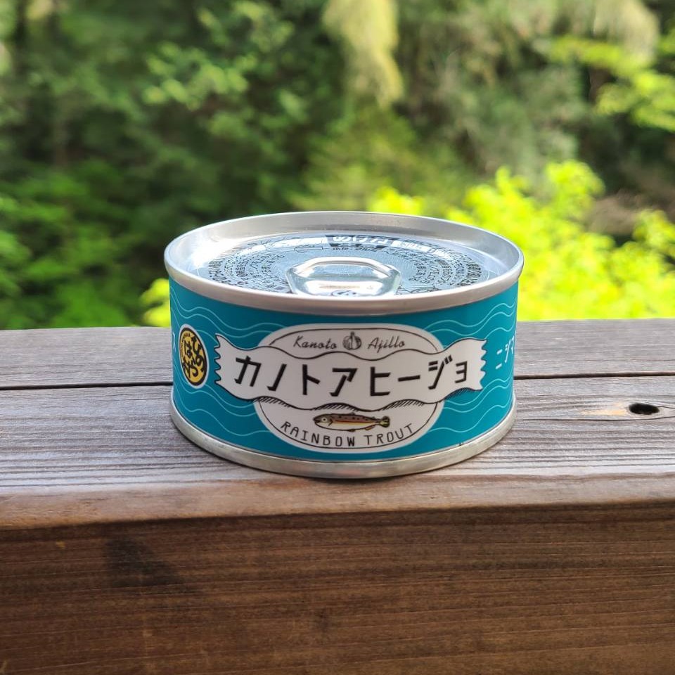 檜原村にあるマス釣場、「神戸国際マス釣場」のニジマスを使ったアヒージョです。シンプルな材料で作られていて、神戸国際マス釣場でひとつひとつ缶詰にしています。