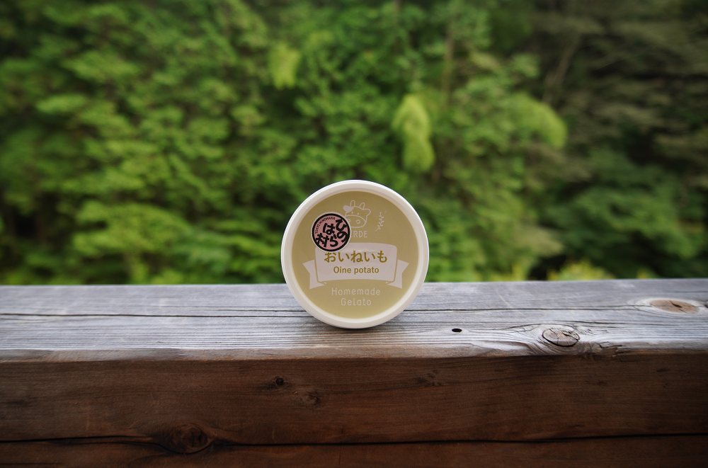• おいねいも:全国でも檜原村でしか穫れない在来種のじゃがいも「おいねいも」使用。「男爵」よりじゃがいもの風味が感じられます。貴重なアイスです。