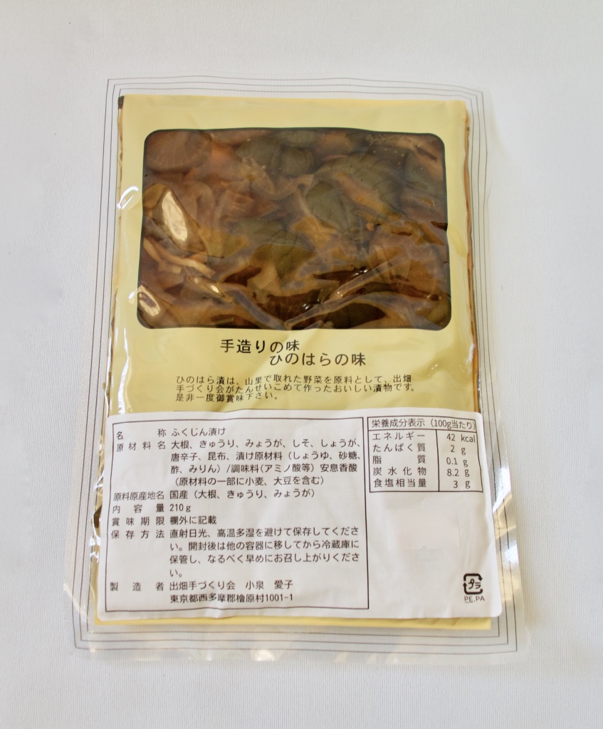 新鮮な大根、きゅうり、しそ、みょうが等を村のおかあさんたちが丹精こめて漬物にしました。