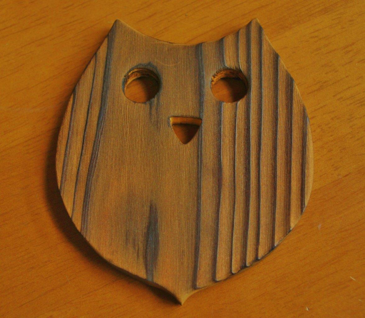 【もりのうた】手作りの木工芸品 コースター(ふくろう)